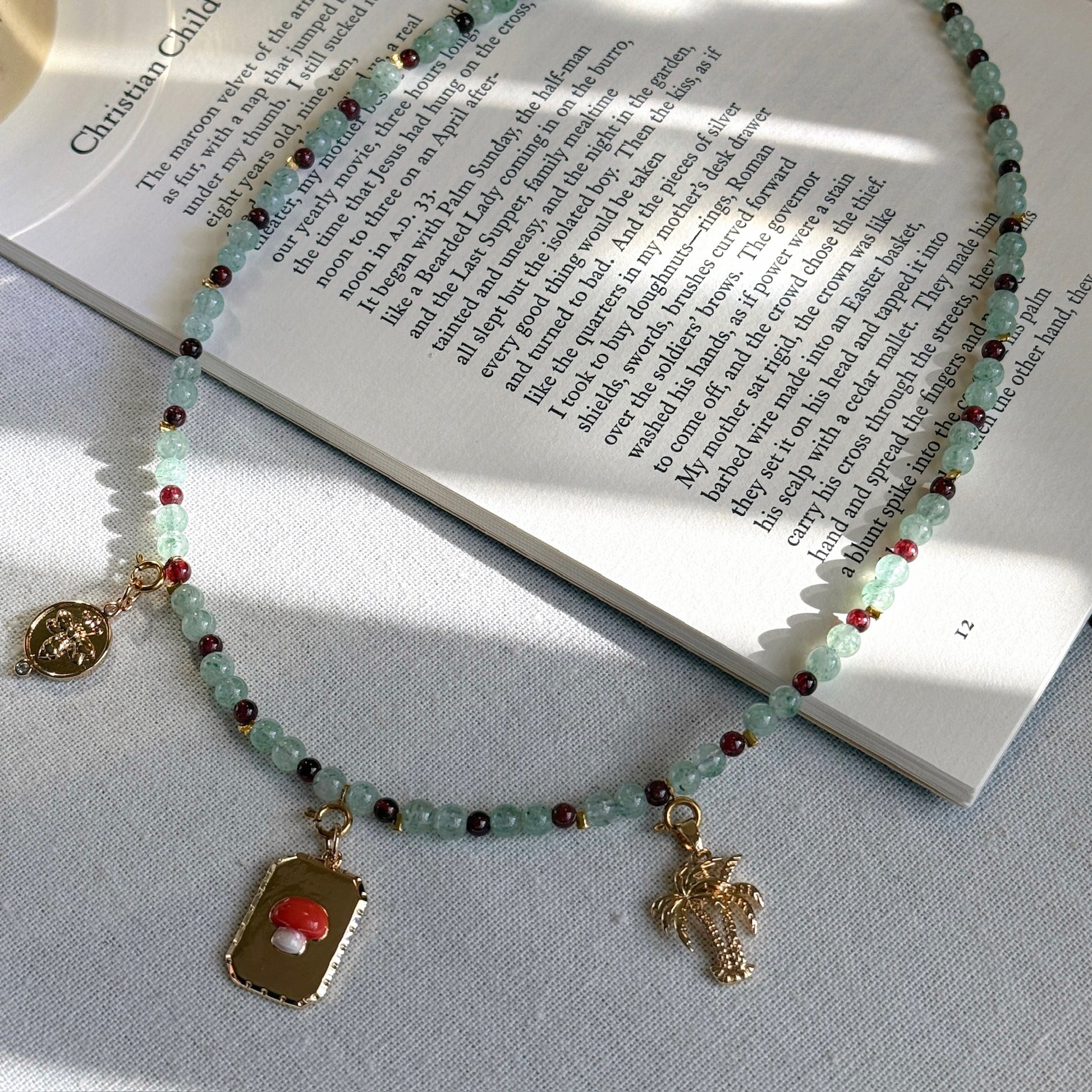 Christmas Mistletoe: Green Aventurine & Garnet Jewelry Necklace