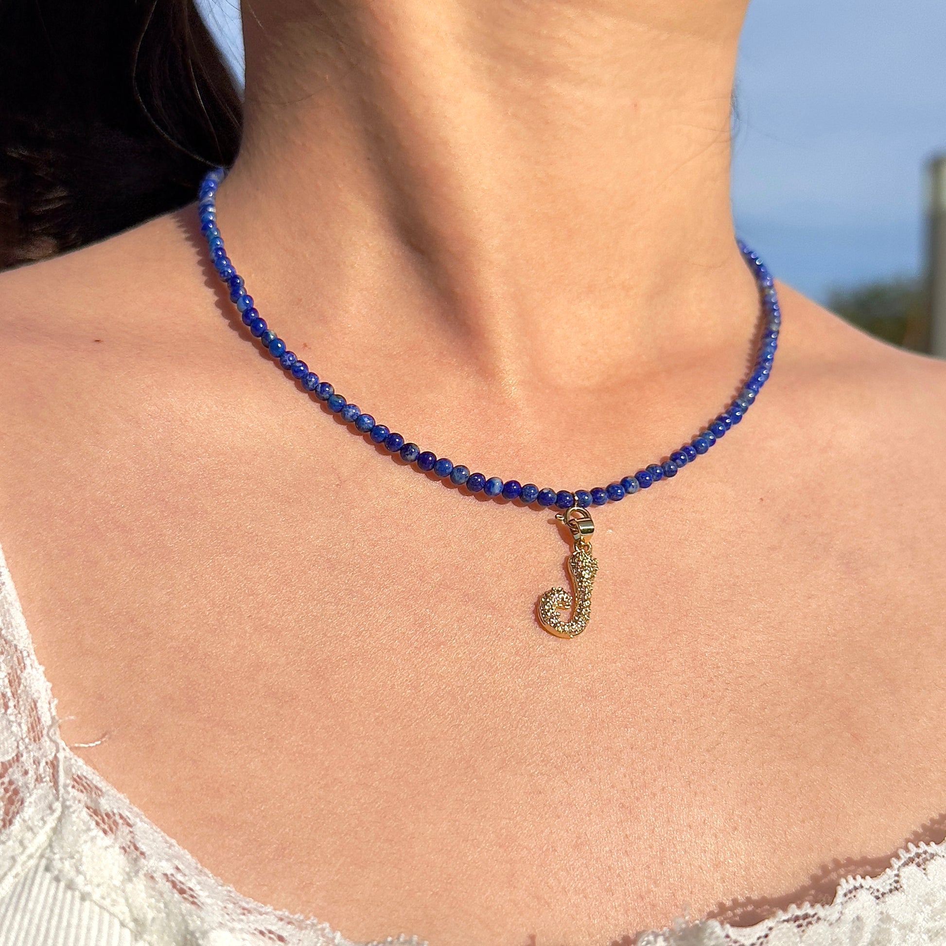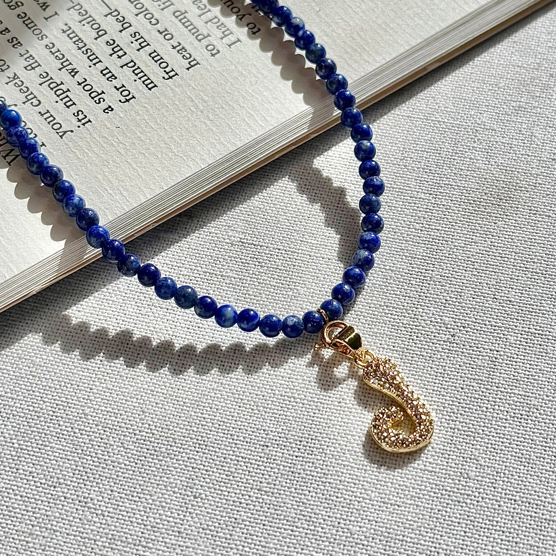 Initial Letter Lapis Lazuli Beaded Necklace